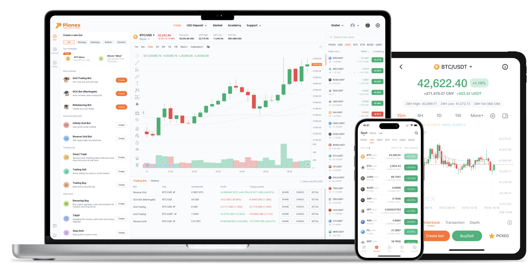 Pionex supports many coins and making bots is very easy even for beginners!
